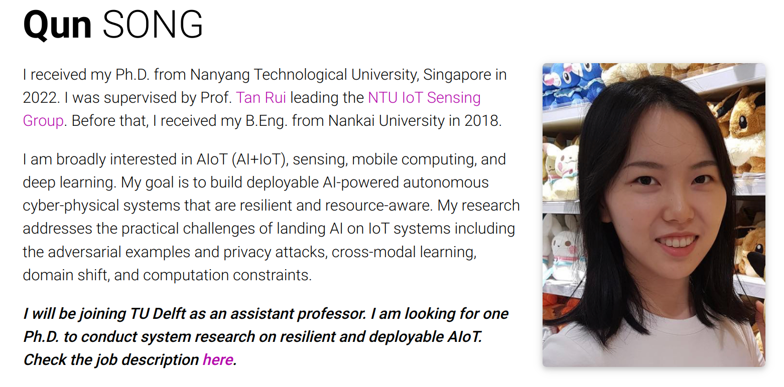 Qun joined TU Delft as a tenure-track Assistant Professor on 30th Aug 2022.