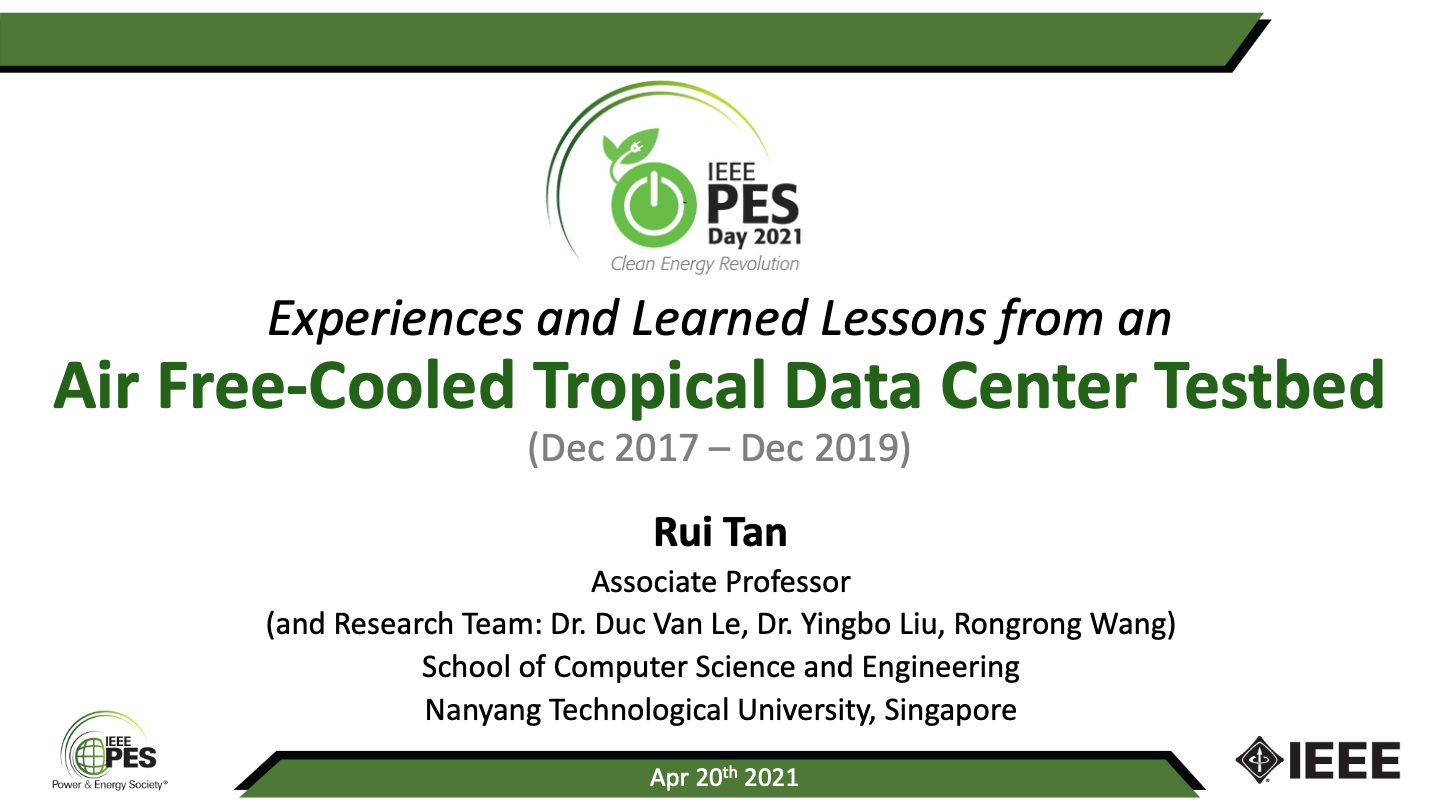 Rui gave a talk titled “Experiences and Learned Lessons from an Air Free-Cooled Tropical Data Center Testbed (Dec 2017 – Dec 2019)” on IEEE PES Day 2021.
